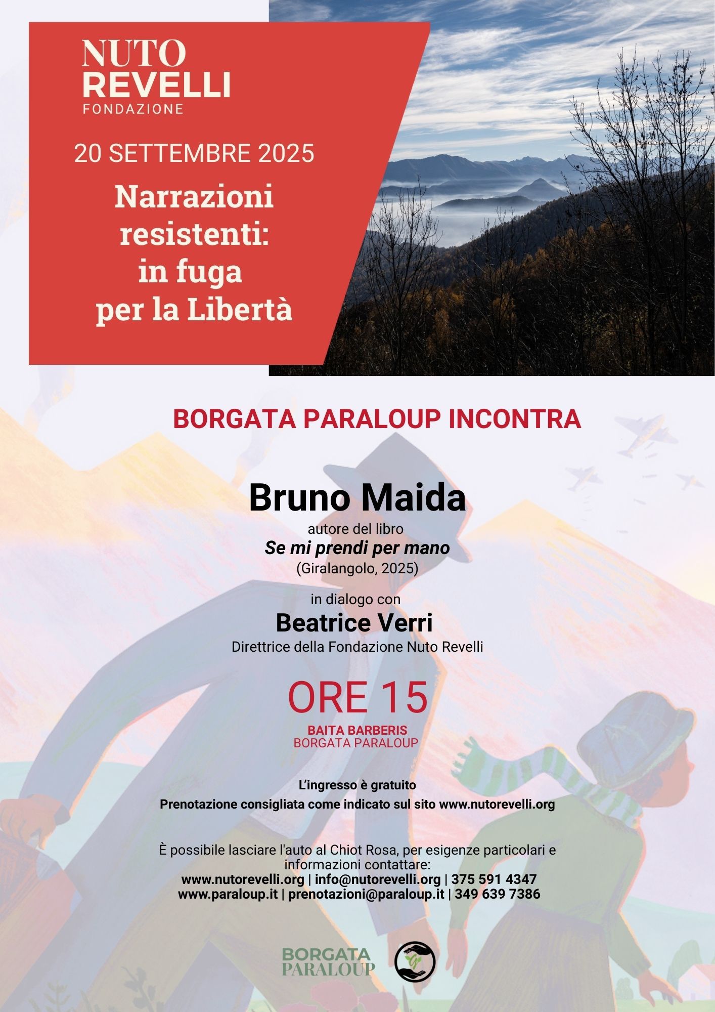 Sabato 20 settembre ore 15 in Baita Barberis: Bruno Maida autore di Se mi porti per mano (ed. Giralangolo) in dialogo con Beatrice Verri (direttrice Fondazione Nuto Revelli)